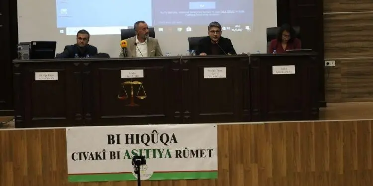 Dicle Üniversitesi Hukukçular Kulübü, 10-17 Aralık İnsan Hakları Haftası kapsamında, “İnsan Hakları Paneli” düzenledi. Hukuk Fakültesi Konferans Salonu’nda gerçekleştirilen panele, çok sayıda sivil toplum örgütü temsilcisi, akademisyen ve öğrenci katıldı. Kürtçe, “Toplumsal hukuk, onurlu barış” pankartının yer aldığı panelin moderatörlüğünü Dicle Üniveristesi Öğretim üyesi Dr. Bavver Kılıçoğlu yaptı. Panele, Özgürlük İçin Hukukçular Derneği (ÖHD) Genel Merkez Kurulu üyesi Adile Salman, Akademisyen Salim Orhan ve İnsan Hakları Derneği (İHD) Eş Genel Başkanı Cihan Aydın panelist olarak katıldı.