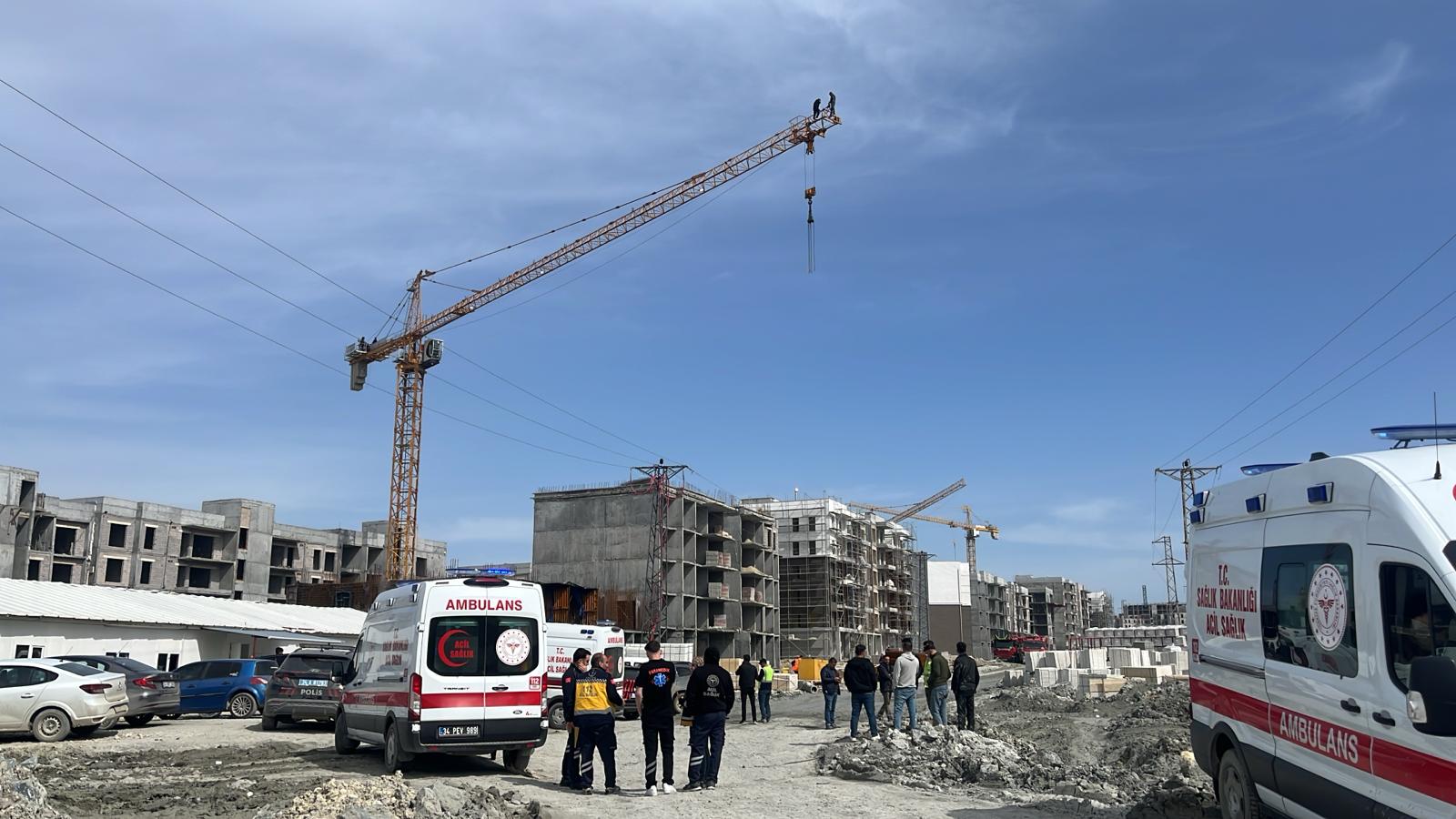 Aylardır maaşlarını alamayan kule vinç operatörü 7 işçi, vinç bomu üzerine çıkarak eylem gerçekleştirdi