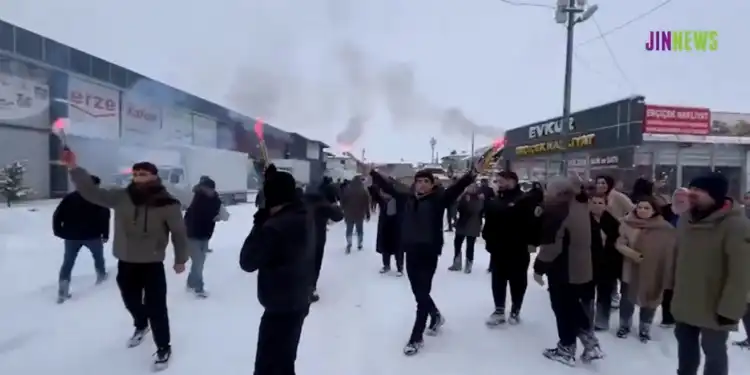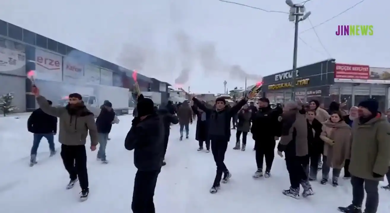 Wan’da Demokratik Kurumlar Platformu, HTŞ çetelerinin Rojava’ya yönelik saldırılarını protesto etmek amacıyla sebze halinden yürüyüş gerçekleştiriyor.