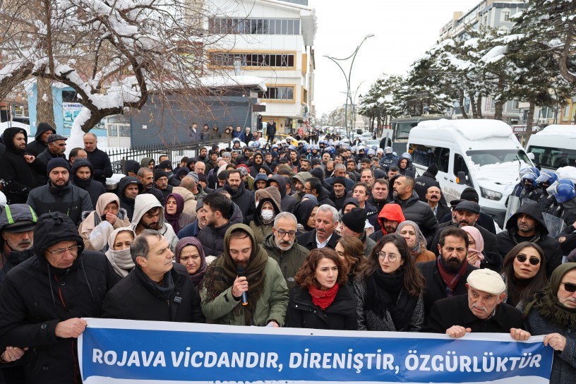 Agirî Tahir Elçi Meydanı’nda, bir araya gelen kitle, sık sık “Bijî berxwedana Rojava”, “Rojava ne tenê ye” ve “Jin, jiyan, azadî” sloganlarını attı. Açıklamanın ardından yürüyüş yapmak isteyen kitleye polis izin vermedi. Burada konuşan Halkların Eşitlik ve Demokrasi Partisi (DEM Parti) Agirî Milletvekili Heval Bozdağ, Rojava’nın hedef alınmasının tesadüf olmadığını belirterek saldırıların halkların ortak yaşam iradesine dönük olduğunu vurguladı.