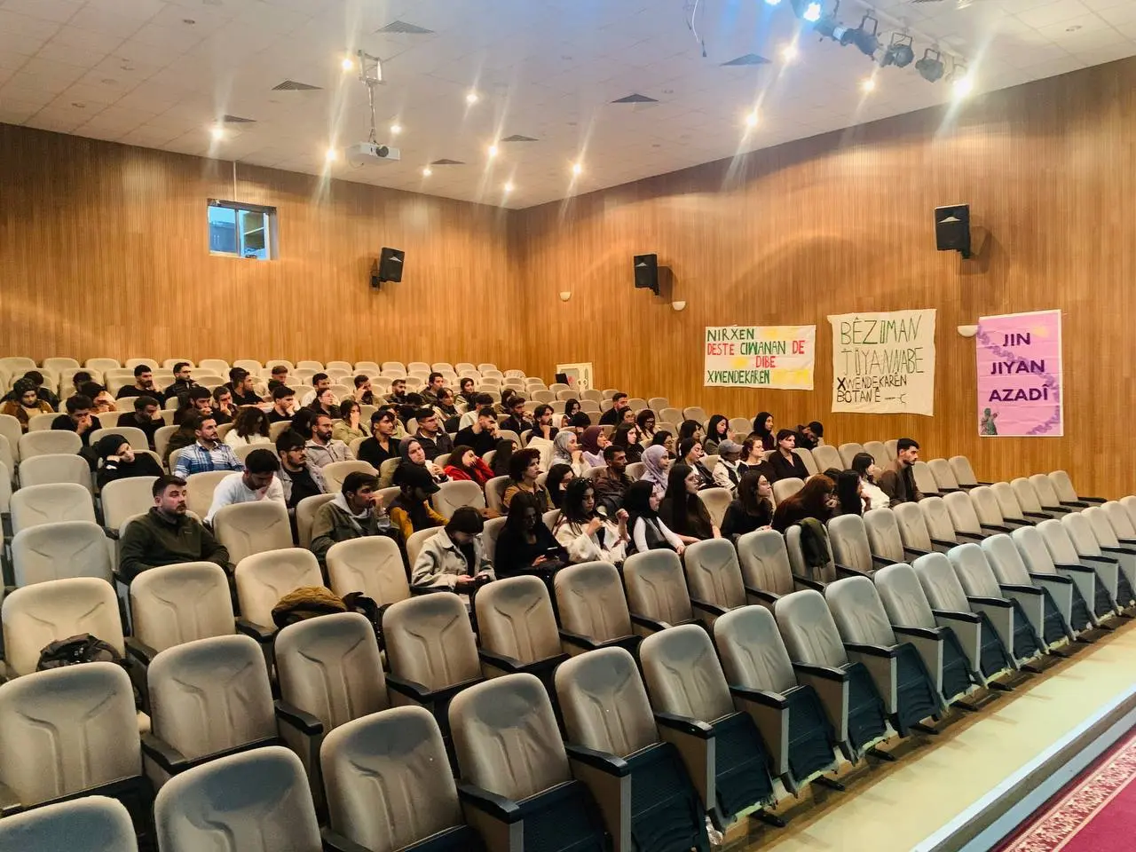 Demokratik Öğrenci Birliği, “Köklerinle Diren, Değişimi Başlat” şiarıyla Wan’da bulunan Berivan Kültür Merkezi’nde konferans düzenledi. Dört oturum halinde yapılan konferansta, öğrenci gençliğin toplumsal rolü, üniversitelerdeki yapısal sorunlar, cinsiyet eşitsizliği ve anadilde eğitim hakkı konularında tartışmalar yürütüldü.
