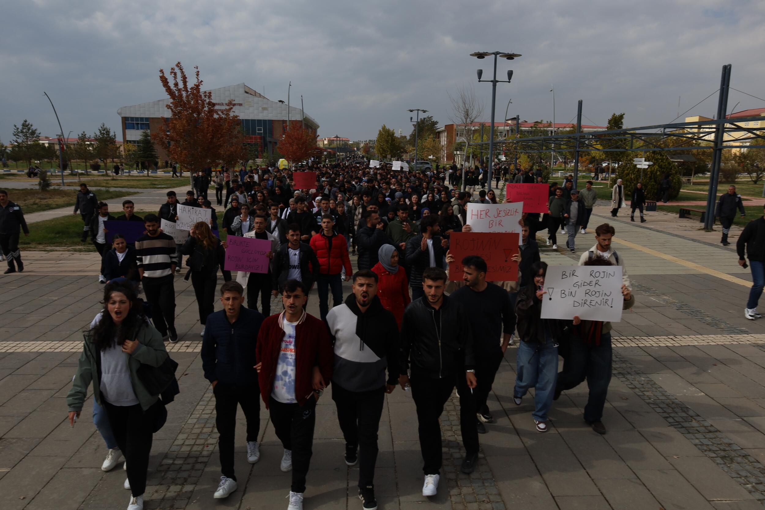 Van Yüzüncü Yıl Üniversitesi öğrencileri, ATK’nin dosyadaki tutumunu rektörlük binasından ATK’ye yaptığı yürüyüşle protesto etti. Çok sayıda öğrencinin katıldığı yürüyüşte, “Rojin Kabaiş isyanımızdır”, “Erkek vuruyor devlet koruyor”, “Jin, jiyan, azadî”, “Rektör istifa” ve “Bu intihar değil cinayet” sloganları atıldı.