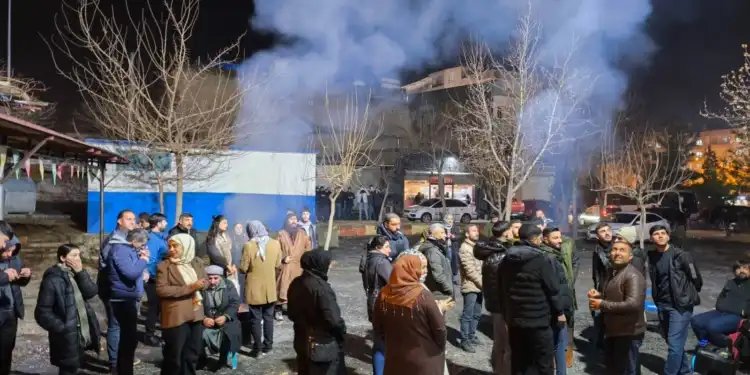 Akşam saatlerinde ilçe merkezinde toplanan halk, “Li Rojava berxwedan li Bakûr serhildane” pankartını açtı. Ara sokaklarda havai fişek patlatan yurttaşlar, sık sık “Bîji Serok Apo” ve “Bîji berxwedana Rojava” sloganları atarak saldırıları protesto etti.