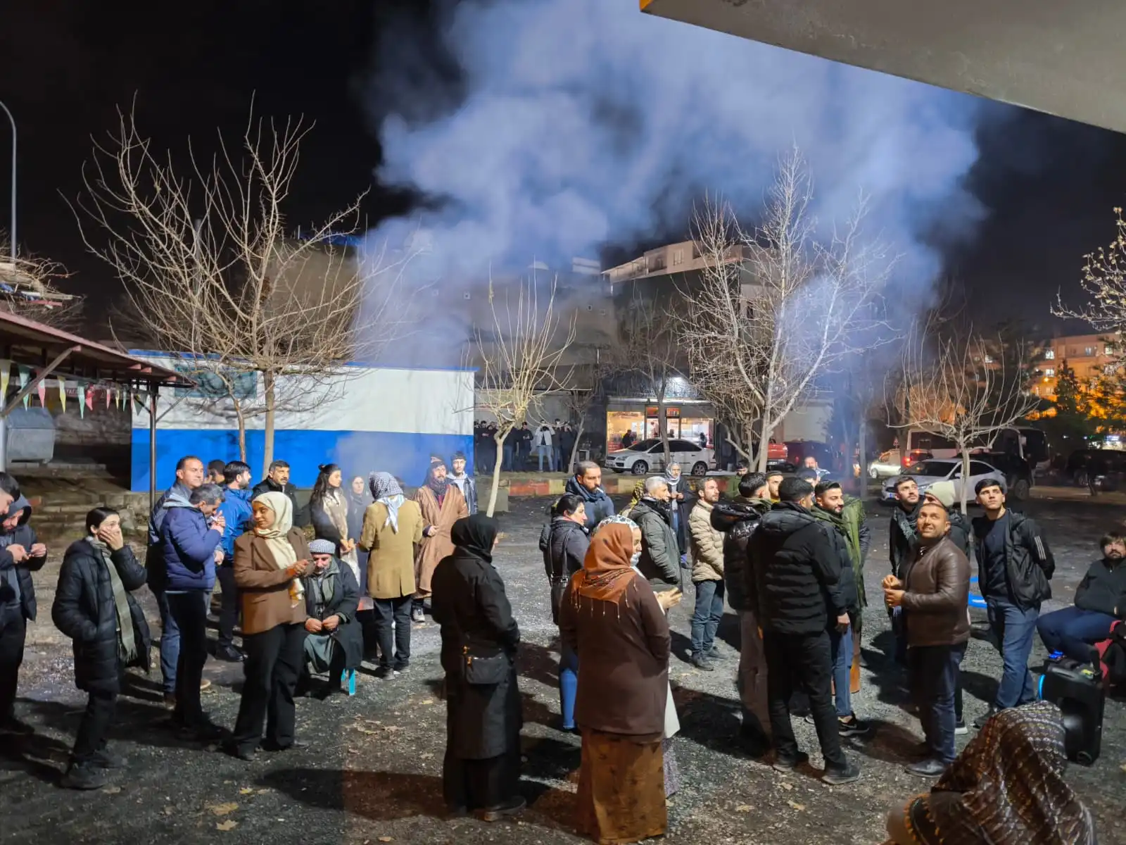 Akşam saatlerinde ilçe merkezinde toplanan halk, “Li Rojava berxwedan li Bakûr serhildane” pankartını açtı. Ara sokaklarda havai fişek patlatan yurttaşlar, sık sık “Bîji Serok Apo” ve “Bîji berxwedana Rojava” sloganları atarak saldırıları protesto etti.
