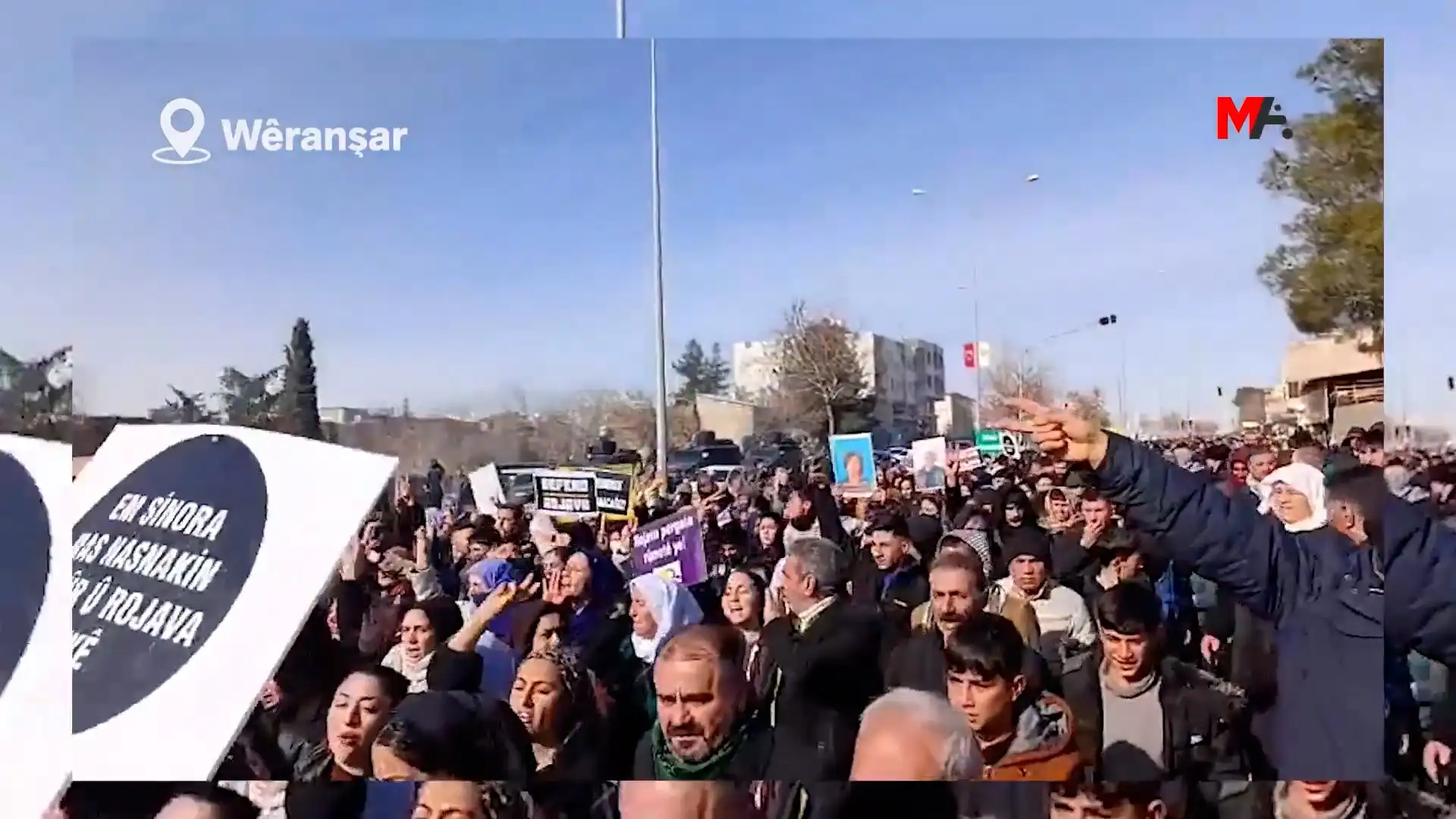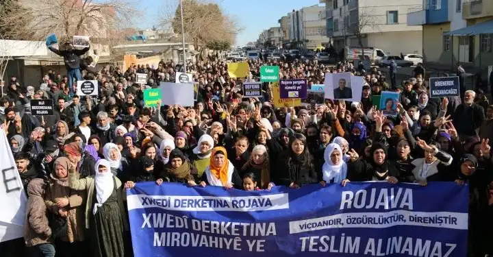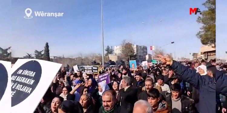 Rojava’ya yönelik saldırılara karşı Wêranşar’da bir araya gelen binlerce kişi, ‘Rojava rumeta me ye’ diye haykırdı