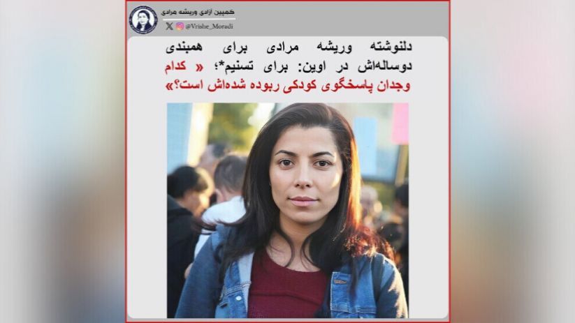 Aylar önce yazılan mektup, İran’daki geniş çaplı internet kesintileri nedeniyle bugüne kadar paylaşılmadı. Mektup, Tesnim adlı çocuğa ithaf edildi. Tesnim, Evin Cezaevi’nde kadınlar koğuşunda annesiyle birlikte yaşıyor. Annesi Beluc siyasi tutsak Nesime İslamzehi olan Tesnim, annesinin tutsaklığı sırasında cezaevinde doğdu ve hâlâ çocukluğunu parmaklıklar ardında sürdürüyor.